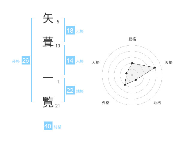 矢葺 一覧さんを姓名の画数から五運を鑑定