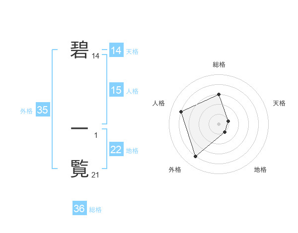 碧 一覧さんの外格は35画の4点!