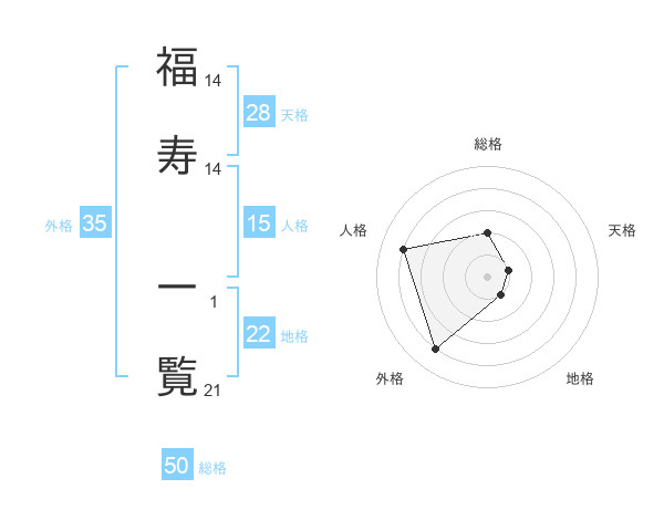 福寿 一覧さんの総格は50画の2点!