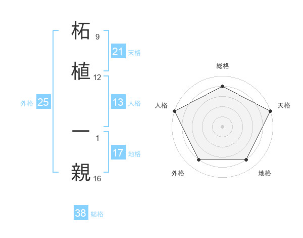 柘植 一親さんの総格は38画の4点!