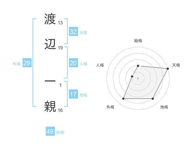 渡辺 一親さんを姓名の画数から五運を鑑定