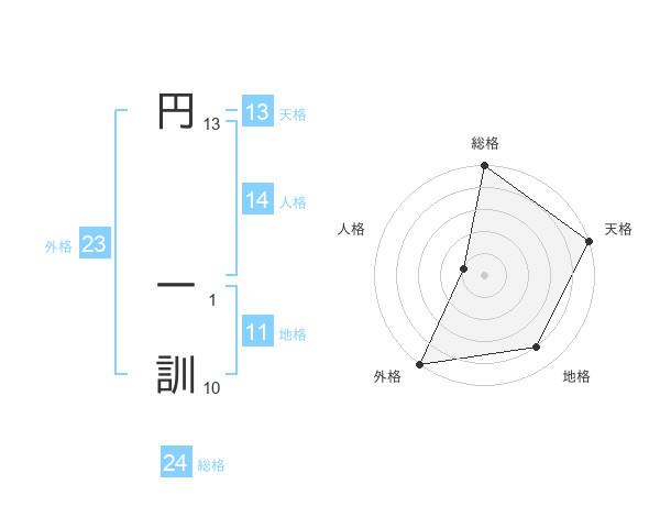 円 一訓さんの総格は24画の5点!