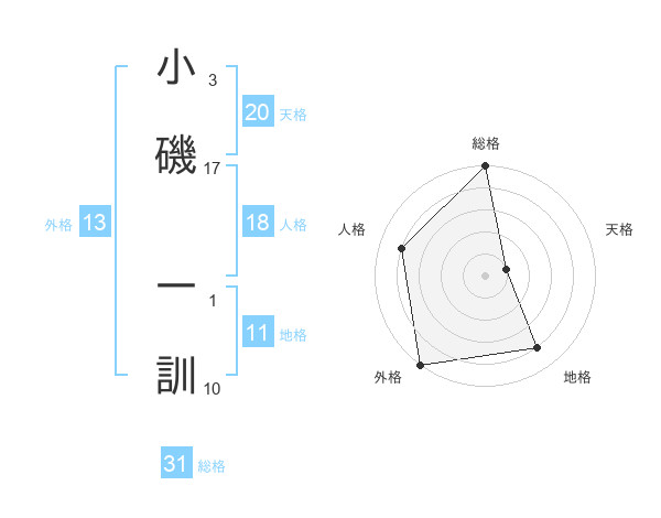 小磯 一訓さんの総格は31画の5点!