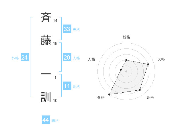 斉藤 一訓さんを姓名の画数から五運を鑑定