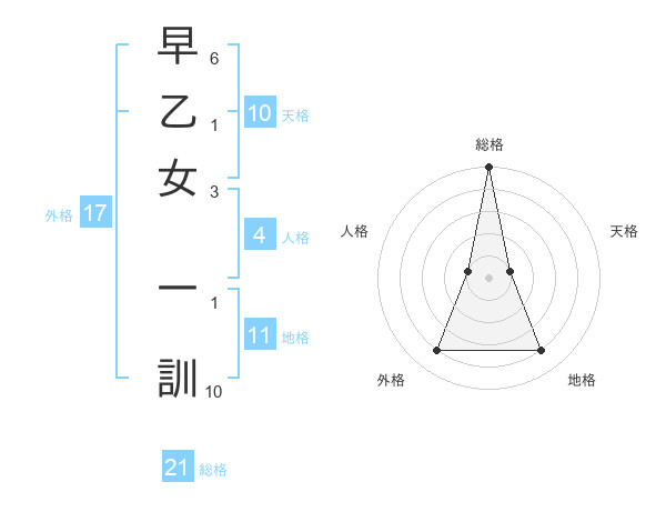 早乙女 一訓さんを姓名の画数から五運を鑑定