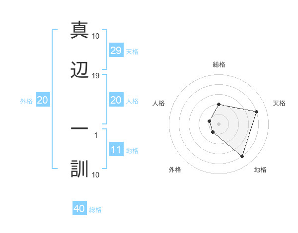 真辺 一訓さんの天格は29画の4点!