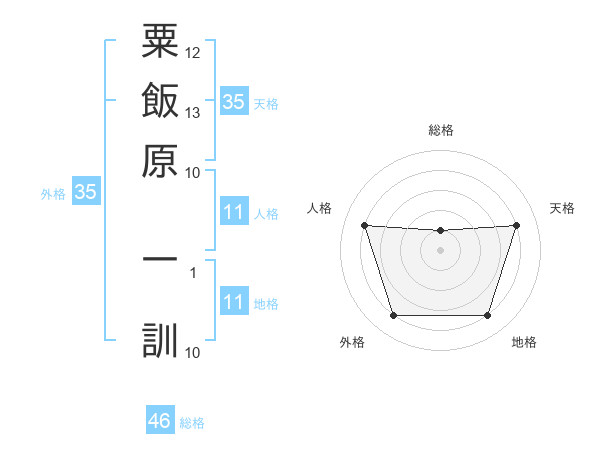 粟飯原 一訓さんの総格は46画の1点!
