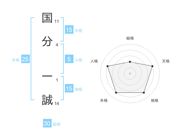 国分 一誠さんの天格は15画の4点!