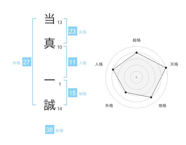 当真 一誠さんの外格は27画の3点!