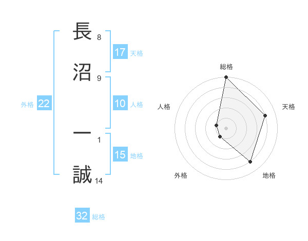 長沼 一誠さんの総格は32画の5点!