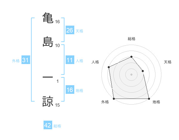 亀島 一諒さんを姓名の画数から五運を鑑定