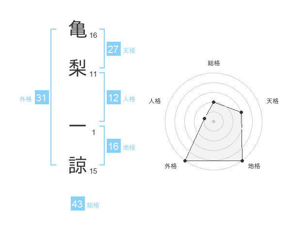 亀梨 一諒さんの総格は43画の2点!