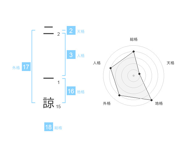 二 一諒さんの総格は18画の4点!