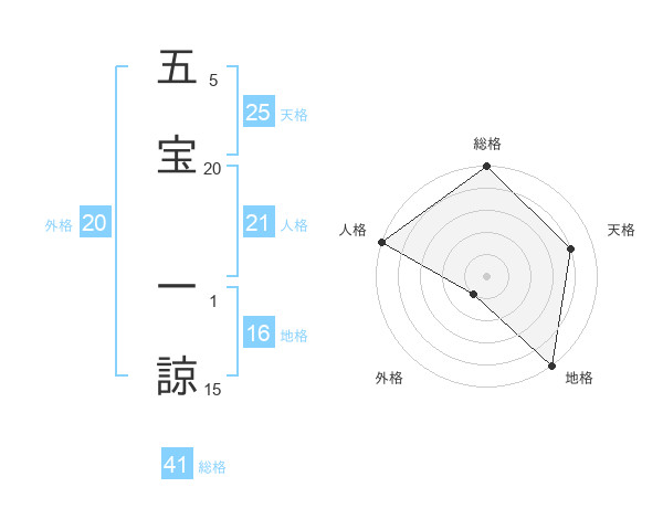 五宝 一諒さんを姓名の画数から五運を鑑定