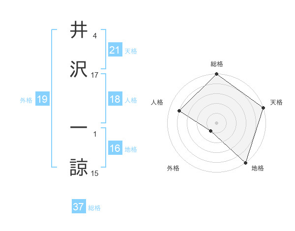 井沢 一諒さんの総格は37画の5点!