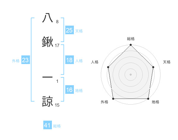 八鍬 一諒さんを姓名の画数から五運を鑑定