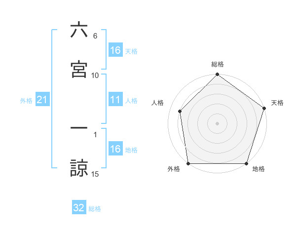 六宮 一諒さんの総格は32画の5点!
