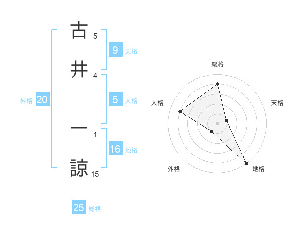 古井 一諒さんの地格は16画の5点!