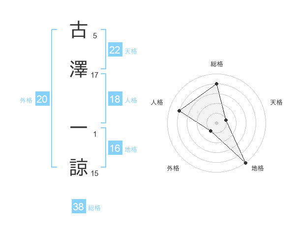 古澤 一諒さんを姓名の画数から五運を鑑定