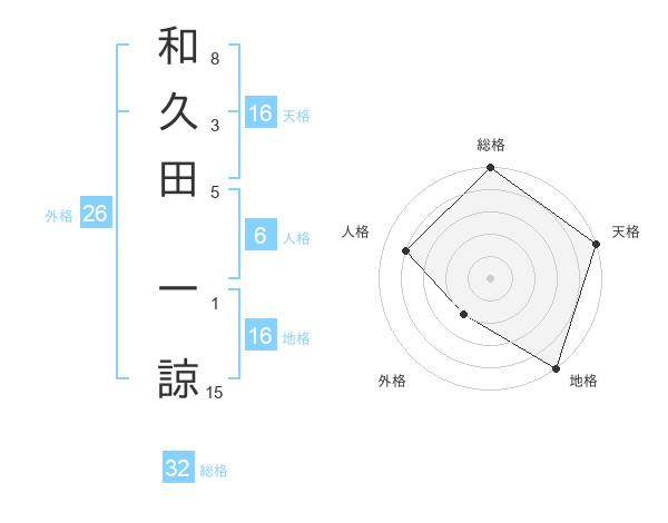 和久田 一諒さんを姓名の画数から五運を鑑定