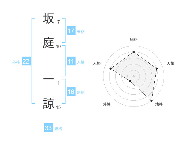 坂庭 一諒さんの外格は22画の1点!