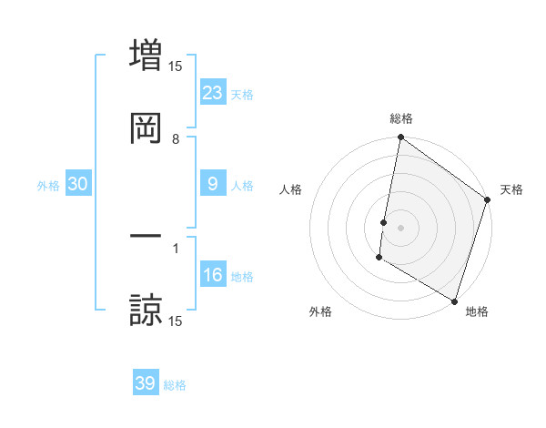 増岡 一諒さんの総格は39画の5点!