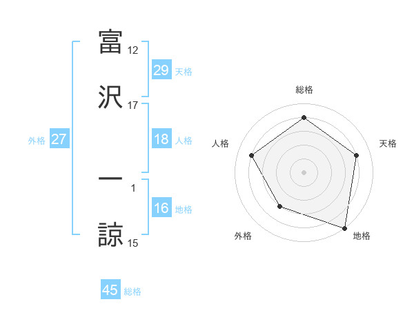 富沢 一諒さんの総格は45画の4点!