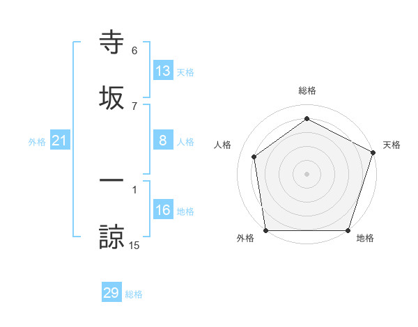 寺坂 一諒さんを姓名の画数から五運を鑑定