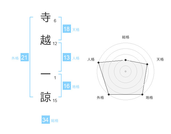 寺越 一諒さんの外格は21画の5点!