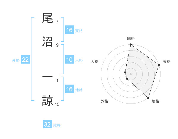 尾沼 一諒さんを姓名の画数から五運を鑑定