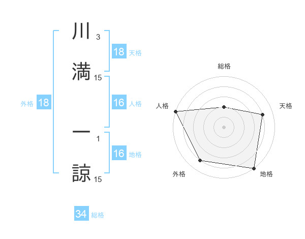 川満 一諒さんの天格は18画の4点!