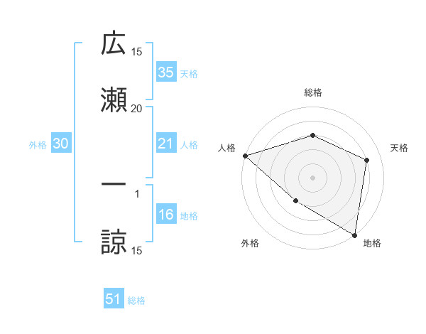 広瀬 一諒さんの総格は51画の3点!
