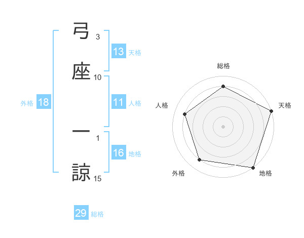弓座 一諒さんを姓名の画数から五運を鑑定