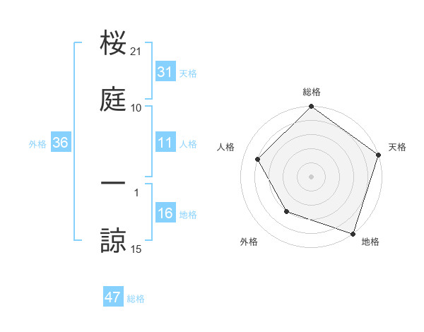 桜庭 一諒さんの総格は47画の5点!