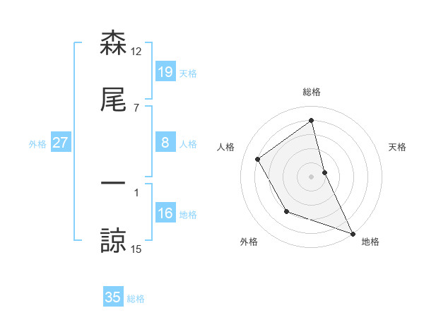 森尾 一諒さんの総格は35画の4点!