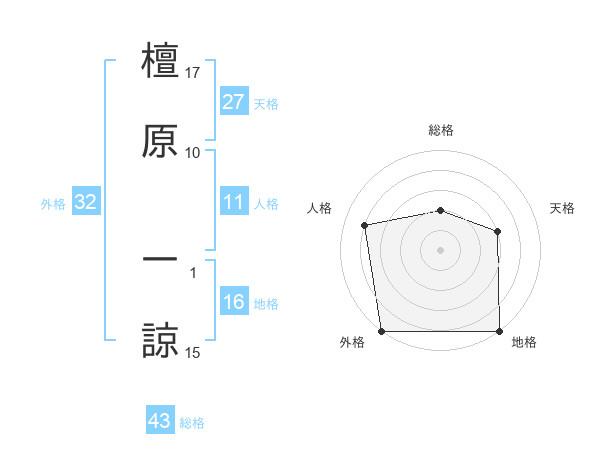 檀原 一諒さんを姓名の画数から五運を鑑定