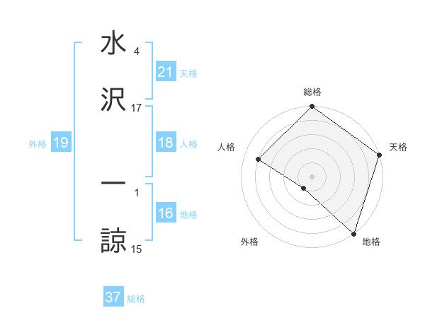 水沢 一諒さんの総格は37画の5点!
