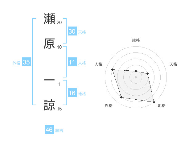 瀬原 一諒さんを姓名の画数から五運を鑑定