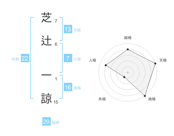 芝辻 一諒さんの総格は29画の4点!