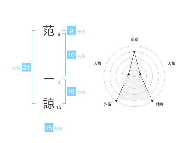 范 一諒さんの総格は25画の4点!
