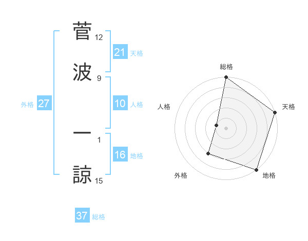菅波 一諒さんの総格は37画の5点!