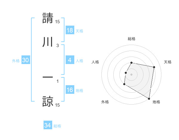 請川 一諒さんの天格は18画の4点!