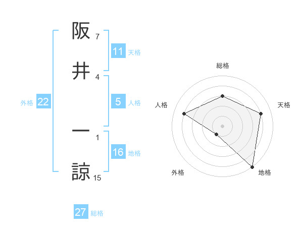 阪井 一諒さんの外格は22画の1点!