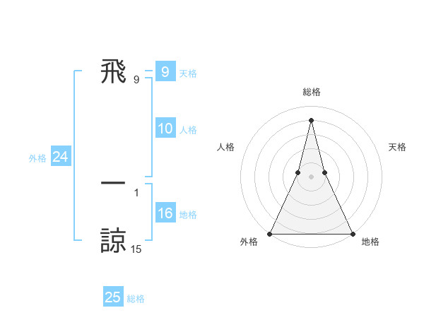 飛 一諒さんの外格は24画の5点!