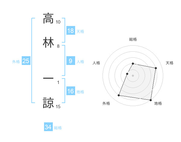 高林 一諒さんの総格は34画の2点!