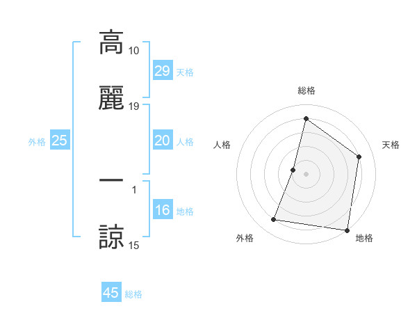 高麗 一諒さんを姓名の画数から五運を鑑定