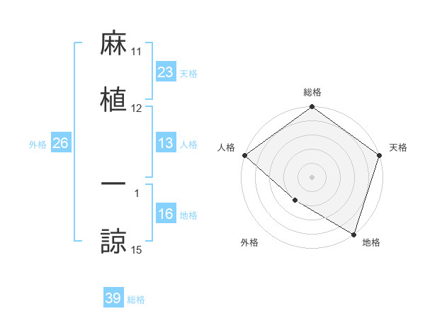 麻植 一諒さんを姓名の画数から五運を鑑定