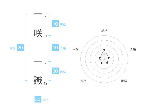 一咲 一識さんの地格は20画の1点!