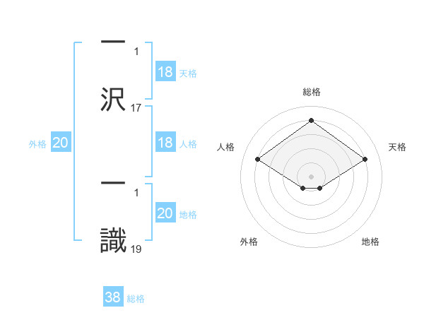 一沢 一識さんの総格は38画の4点!