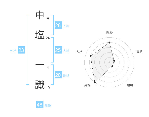 中塩 一識さんの地格は20画の1点!